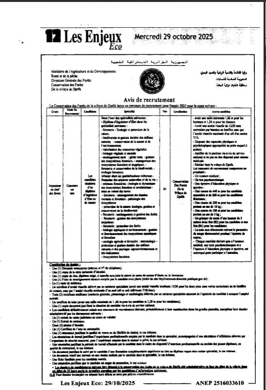 آخر الإعلانات:اعلان عن توظيف لفائدة محافظة الغاباتاعلان عن اعادة استشارات 25-26-27-28-29- لفائدة مديرية التربيةاعلان عن طلب عروض مع اشتراط قدرات دنيا لفائدة مديرية التعمير و الهندسة المعمارية و البناءاعلان عن توظيف لفائدة الغاباتاعلان عن طلب العروض مع اشتراط قدرات لفائدة وكالة التسيير العقارياعلان عن عدم جدوى لفائدة ديوان الترقية و التسيير العقارياعلان عن المنح المؤقت لفائدة بلدية الجلفةاعذار خاص بمؤسسة الاشغال الكتعلقة بتهيئة احياء مسعد 11 حصةاعلان عن منح تصحيحي رقم 19/25 لفائدة المؤسسة العمومية الاستشفائيةاعلان عن استشارة رقم 29/32/33/34/35 لفائدة مديرية الحماية المدنيةاعلان عن طلب عروض لفائدة مديرية التعمير و التجهيزات العمومية و البناءاعلان عن طلب عروض لفائدة ديوان الترقية و التسيير العقارياعذار لفائدة مديرية التجهيزات العموميةاعذار ثاني لمقاولة اشغال البناء دحمان محمد لفائدة ديوان الترقية و التسيير العقارياعلان عن استشارة استعجالية لفائدة بلدية المليليحةاعلان عن المنح المؤقت لفائدة المؤسسة العمومية الاستشفائية بالادريسيةاعلان عن عدم جدوى طلب العروض لفائدة مديرية السياحة و الصناعة التقليديةاعلان عن الغاء المنح المؤقت لفائدة بلدية الجلفةاعلان عن طلب عروض للمرة الثانية لفائدة مديرية السكناعلان عن المنح المؤقت لفائدة بلدية عمورةاعلان عن استشارة رقم 17/2025 لفائدة بلدية عمورةاعلان عن عدم جدوى لفائدة محافظة الغاباتاعلان عن استشارة 118/25 و تمديد استشارة 119/25 لفائدة مديرية التجهيزات العموميةاعلان عن الاستشارة رقم 13/25 لفائدة ديوان الترقية و التسيير العقارياعذار 01 لفائدة مديرية الاشغال العموميةاعذار اول لفائدة ديوان الترقية و التسيير العقارياعلان عن استشارة بعد عدم جدوى لفائدة مديرية المجاهدينمنح مؤقت لفائدة مديرية التربيةاعلان عن عدم جدوى بلدية مسعداعلان عن استشارة بعد عدم الجدوى02/25 لفائدة مديرية المجاهديناعلان عن المنح المؤقت لفائدة مديرية المصالح الفلاحيةاعلان عن الغاء منح مؤقت لفائدة مديرية التعمير و الهندسة المعمارية و البناءاعلان عن اعذار 02 لفائدة بلدية حاسي بحبحاعلان عن طلب العروض لفائدة مديرية السكن لولاية الجلفةاعذار لفائدة مديرية المصالح الفلاحيةاعلان عن المنح المؤقت لفائدة التجهيزات العموميةاعلان عن المنح المؤقت لفائدة مديرية التعمير و الهندسة المعمارية و البناءاعلان عن المنح المؤقت لفائدة المصالح الفلاحيةاعلان عن الغاء المنح المؤقتاعلان عن جدوى رقم 01/25 لفائدة مديرية الضرائباعذار 01 لفائدة بلدية دار الشيوخاعلان عن استشارة 116-117/25 لفائدة مديرية التجهيزات العموميةاعلان عن المنح المؤقت لفائدة مديرية التعمير و الهندسة المعماريةاعلان عن طلب عروض لفائدة بلدية عين وسارة من أجل التحسين الحضرياعلان عن طلب عروض من اجل اقتناء عتاد طبي لفائدة مستشفى الام و الطفلاعلان عن طلب العروض لفائدة مديرية الادارة المحليةاعلان عن طلب عروض لفائدة مديرية التجهيزات العموميةاعلان عن توظيف لفائدة المؤسسة العمومية الاستشفائية بقطارةاعلان لفائدة مديرية البيئةاعلان عن الغاء المنح المؤقت لفائدة مديرية الثقافة و الفنوناعلان عن الغاء المنح المؤقت لفائدة مديرية الصحة و السكاناعلان عن الغاء تعديل منح مؤقت لفائدة مديرية الاشغال العموميةاعلان عن استشارة رقم 139/25 لفائدة بلدية عين وسارةاعلان عن استشارة 01/25 لفائدة مديرية السلكية و اللاسلكيةاعلان عن المنح المؤقت لفائدة مديرية التعمير و الهندسة المعمارية و البناءاعلان عن عدم جدوى لفائدة مديرية الادارة المحلية بخصوص اقتناء و تركيب موزع هاتفياعلان عن الغاء المنح لفائدة مديرية الثقافة و الفنوناعلان عن المنح المؤقت لفائدة بلدية الجلفةاعلان عن طلب عروض مع اشتراط قدرات دنيا لفائدة مديرية التجهيزات العموميةاعلان عن المنح لفائدة مديرية التجهيزات العموميةاعلان عن الغاء المنح المؤقت لفائدة مديرية التعمير و الهن